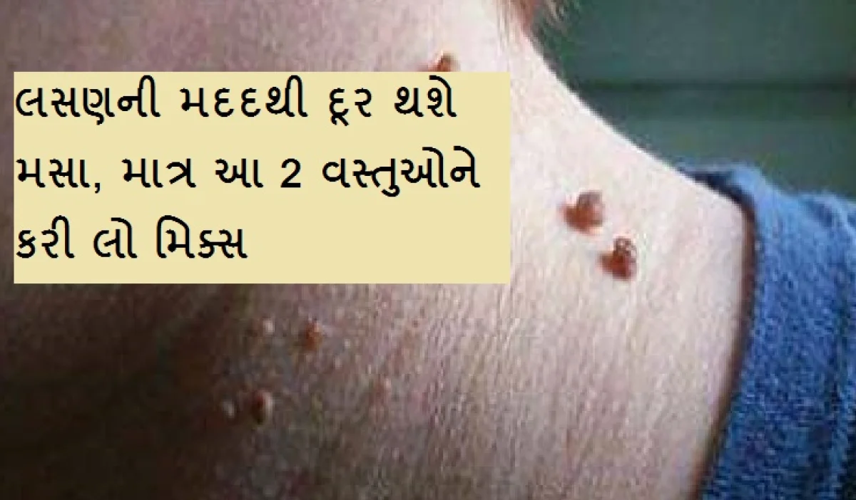 ફેશિયલ બ્યુટી પર ખરાબ અસર પડે છે. સામાન્ય રીતે ત્વચામાં મેલાનિનના વધારે હોવાના કારણે ચેહરા પર મોટા-મોટા મસા નિકળી આવે છે. તો ઘણા લોકોને જન્મથી જ આ પરેશાનીનો સામનો કરવો પડી શકે છે. જો તમે પણ આ સમસ્યાના ઉકેલ ઈચ્છો છો તો તેના માટે તમે ઘર વપરાશમાં થતી શાક લસણના ઉપયોગ કરી શકો છો. પણ તેની સાથે તમને કેટલીક વસ્તુઓ પણ મિક્સ કરવી પડશે ત્યારે જ ફાયદો મળશે.