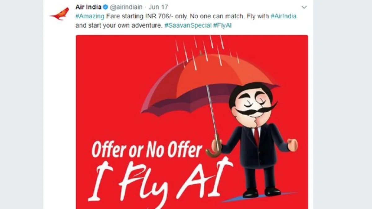 એયર ઈંડિયાએ પોતાના ટ્વિટર હૈડલ દ્વારા આ માહિતી આપી છે. ઉલ્લેખનીય છે કે વિમાન કંપનીઓ પોતાના મુસાફરોને લોભાવવા માટે આ પ્રકારની ઓફર આપતી રહે છે. આ પહેલા જેટ, વિસ્તારા સહિત અન્ય એયરલાઈંસ પણ મુસાફરોને આ પ્રકારની ઓફર આપતી રહે છે.