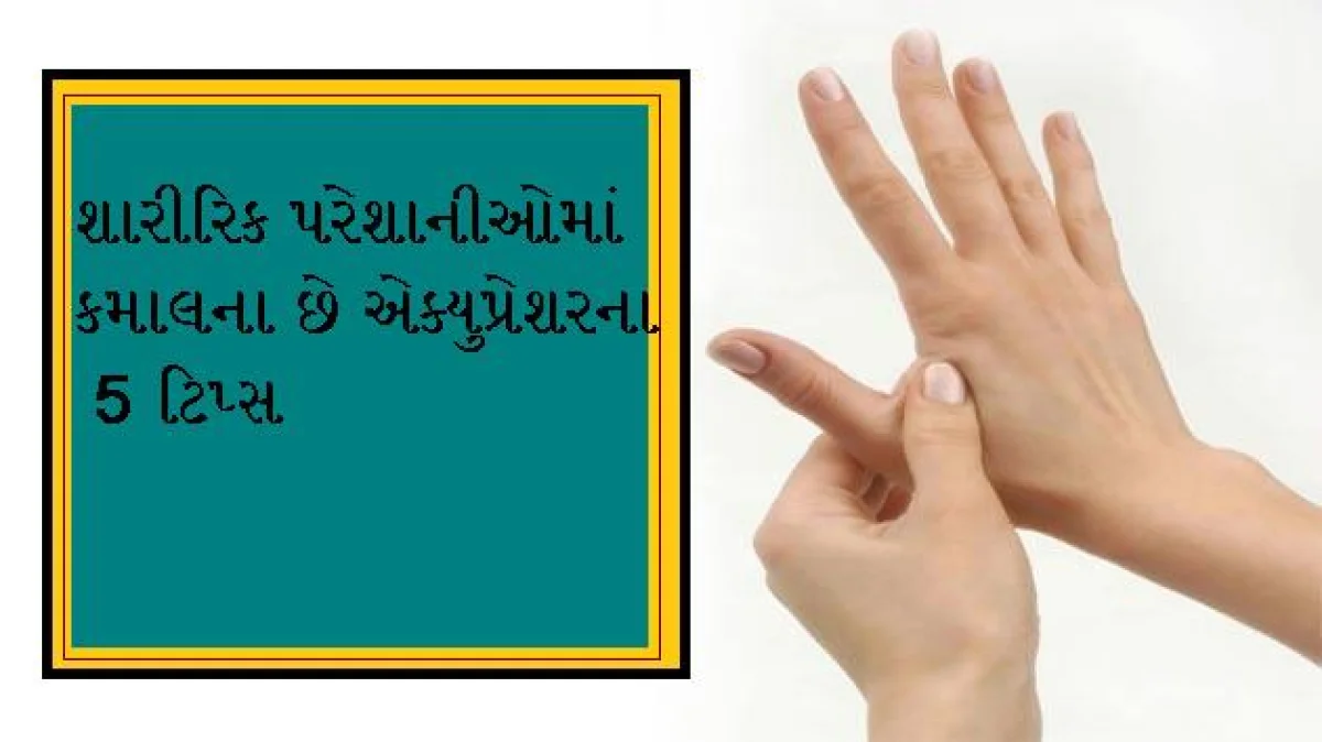 એક્યુપ્રેશર એક પ્રકારની ચિકિત્સા પદ્ધતિ છે જેમાં શરીરના જુદા જુદા સ્થાન પર સ્થિત પાઈંટને દબાવીને આરોગ્યની સમસ્યાઓનો ઉકેલ કરી શકાય છે. આમ તો આ પાઈટ્સ તે સ્થાનોથી આંતરિક રૂપથી સંબંધ રાખે છે. જ્યાં તમને સમસ્યા થઈ રહી છે. જાણો એકયુપ્રેશરના કેટલાક એવા ટિપ્સ જે તમારા માટે ખૂબ મદદગાર અને લાભદાયક થસે.