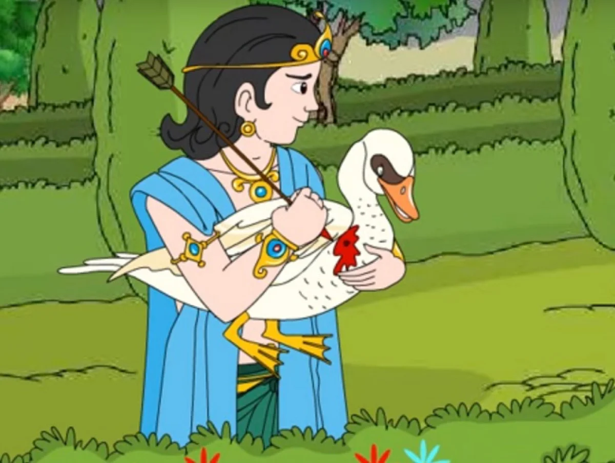એક વાર બગીચામાં બધા રાજકુમાર ફરતાં હતાં ત્યારે આકાશમાં હંસોનું ટોળું નીકળ્યું. હંસોને જોઈને દેવદત્ત નામના રાજકુમારે તીર છોડ્યું. એક હંસની પાંખમાં તીર વાગ્યું અને તે નીચે સિદ્ધાર્થના પગ પાસે આવી પડ્યો. સિદ્ધાર્થે હંસની પાંખમાંથી તીર ખેંચી કાઢ્યું અને હંસને પંપાળ્યો. તેનો ઘા સાફ કરી પાટો બાંધ્યો. હંસ બચી ગયો.
