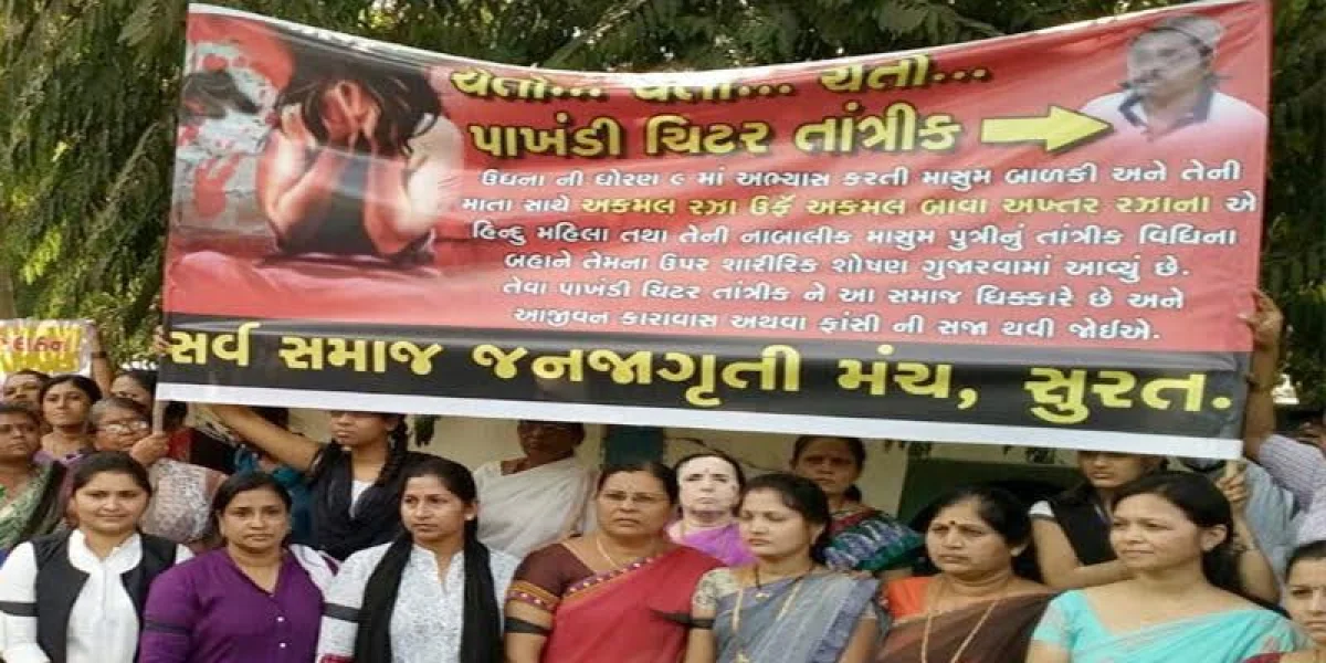 સુરતમાં થોડા દિવસ અગાઉ પુરૂષની કથળેલી તબિયતની સારવાર અર્થે તાંત્રિક બાબાએ મા-દીકરી પર દોઢેક વર્ષ દુષ્કર્મ આચર્યું હતું. જે ઘટના પ્રકાશમાં આવતાં પોલીસે ધૂતારા તાંત્રિક અકમલ રઝા ઉર્ફે અકમલ બાબા અખતર રઝાનાની પોલીસે ધરપકડ કરી કાયદેસરની કાર્યવાહી હાથ ધરી હતી. પરંતુ મહિલાઓને છાસવારે તાંત્રિકો પોતાની હવસનો શિકાર બનાવતાં હોય છે. જેના વિરુદ્ધમાં સર્વ સમાજની મહિલાઓ એક થઈ હતી. અને રોષ પ્રગટ કર્યો હતો. સાથે રેલી યોજી હતી અને પ્લેકાર્ડ દર્શાવી તાંત્રિકો વિરુદ્ધ કાર્યવાહી કરવાની માંગ કરી હતી.
