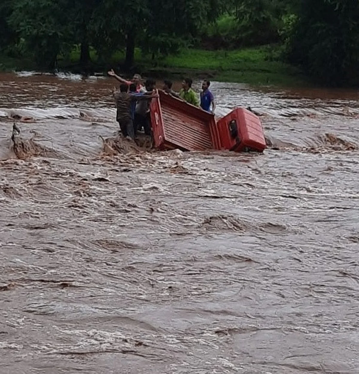 ઉમરપાડામાં મૂશળાધાર વરસાદના લીધે વહારગામ અને બલાલકુવા ગામની નદીમાં અચાનક પૂર આવી ગયું. શનિવારે સવારે નદીના પુલ પરથી પસાર થઇ રહેલો ટેમ્પો પૂરમાં તણાઇ ગયો હતો અને ટેમ્પામાં સવાર 5 લોકોના જીવ માંડ-માંડ બચી ગયા હતા. બચાવ ટુકડીએ ગ્રામીણોની મદદથી બધાને બહાર કાઢ્યા હતા.