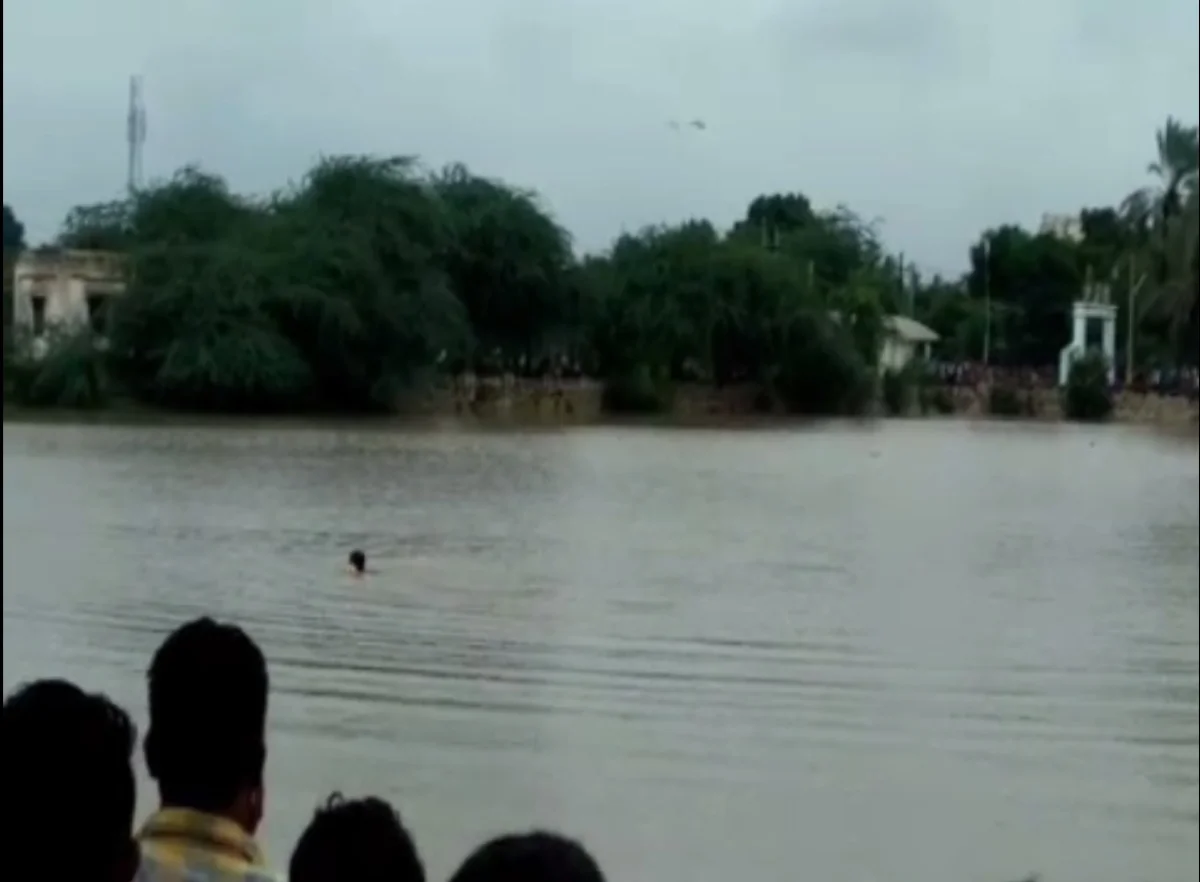 તળાવની પૂજા અર્ચના બાદ અહીં હાજર લોકો નારિયેળ તળાવમાં ફેંકી રહ્યા હતા. આ દરમિયાન ત્રણ છોકરા નાળિયેર પડવા માટે કૂદ્યા હતા. થોડીવાર સુધી ત્રણેય છોકરા નાળિયેર પકડતા રહ્યા. આ દરમિયાન એક છોકરાએ ડૂબકી લગાવી, પરંતુ બહાર ન નિકળ્યો. લોકોએ અવાજમાં તરી રહેલા બાકી બે છોકરાઓનું ધ્યાન પણ તેના પર થોડીવાર પછી ગયું. જોકે ત્યાં સુધી મોડું થઇ ગયું હતું અને છોકરો તળાવમાં જ ગુમ થઇ ગયો. એનડીઆરએફની ટીમ છોકરાને શોધખોળ કરી રહી છે.