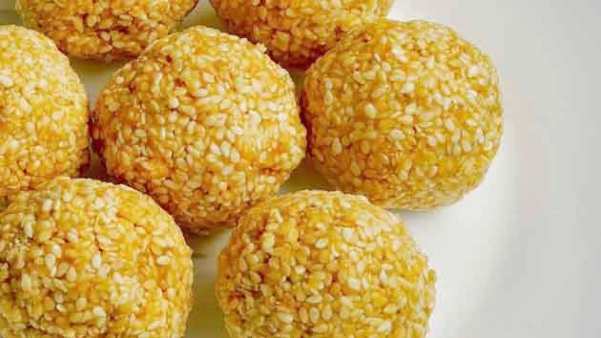 બનાવવાની રીત : એક કઢાઈમાં તલ નાખી ગુલાબી થતા સુધી શેકો. શેકેલા તલ અને સીંગદાણાના ચુરામાં ઈલાયચી પાવડર મિક્સ કરો. એક કઢાઈમાં 1 ચમચી પાણી અને ગોળ નાખી પીગળે ત્યાં સુધી શેકો. આંચ ધીમી કરી ગોળમાં તલ નાખી તેને મિક્સ કરો. ગેસ પરથી તેને ઉતારી લાડુ બનાવી લો.