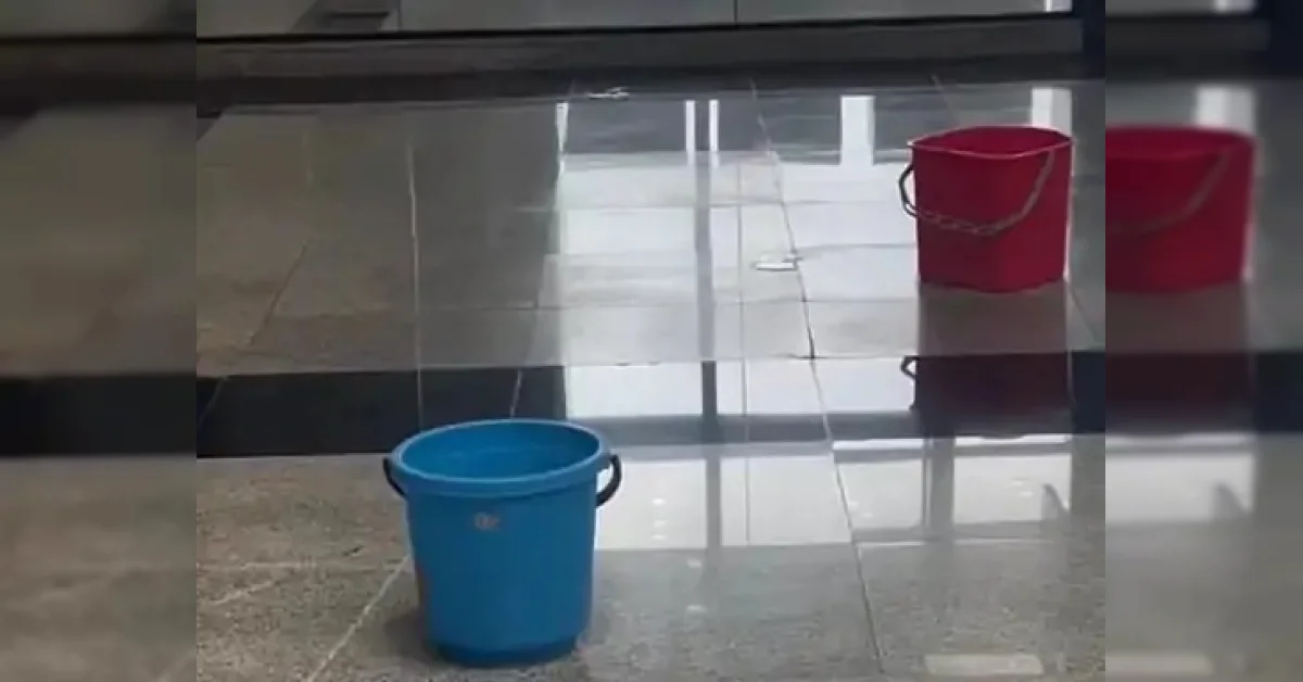 ભારે વરસાદને કારણે કરોડોના ખર્ચે બનેલા સુરત ઈન્ટરનેશનલ એરપોર્ટની છતમાંથી ટપકતાં પાણી માટે ડોલો મુકવી પડી છે. જૂના ટર્મિનલમાં ફર્સ્ટ ફ્લોર પર એરોબ્રિજની લોબી પાસે છતમાંથી વરસાદી પાણી ટપકવાને લીધે મુસાફરોને ભારે પરેશાન થવાનો વારો આવી રહ્યો છે. છતમાંથી ટપકતું પાણી લોબીમાં પ્રસરે નહીં તે માટે પ્લાસ્ટિકની ડોલો મૂકી હોવાનો વીડિયો વાઇરલ થયો છે. પાણી ટપકતું હોવાથી બેરિકેડ લગાવી 2000 સ્ક્વેર ફૂટનો એરિયા બંધ કરવો પડ્યો છે.